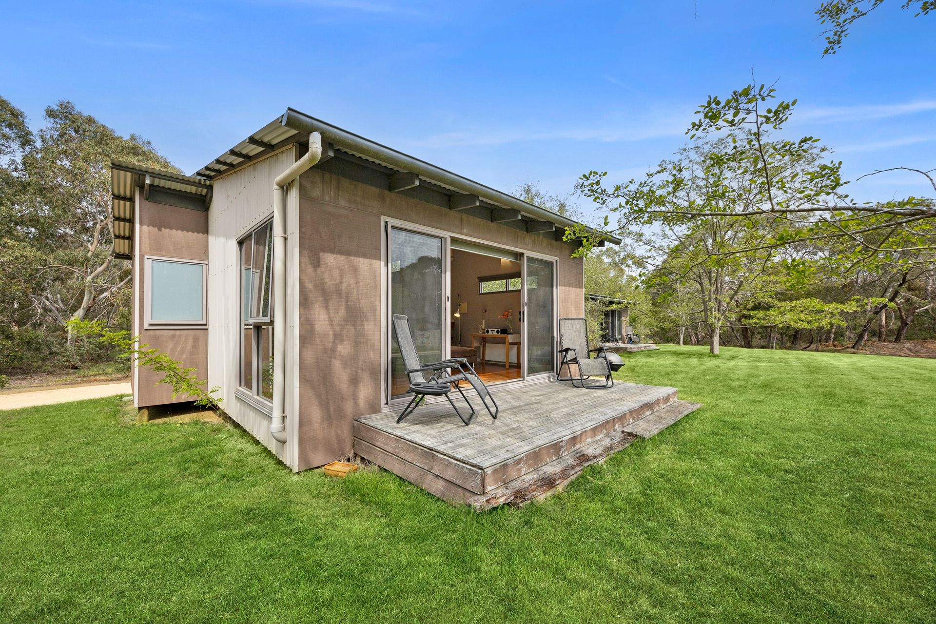 With three bedrooms, two bathrooms, and two spacious living areas—including one with a sofa bed—the home comfortably sleeps up to six guests, with flexibility for an additional guest. The cosy lounge features a woodfire burner for those cooler evenings, while a split-system air conditioner in the kitchen and dining area ensures year-round comfort—keeping you warm in winter and cool through the summer months.