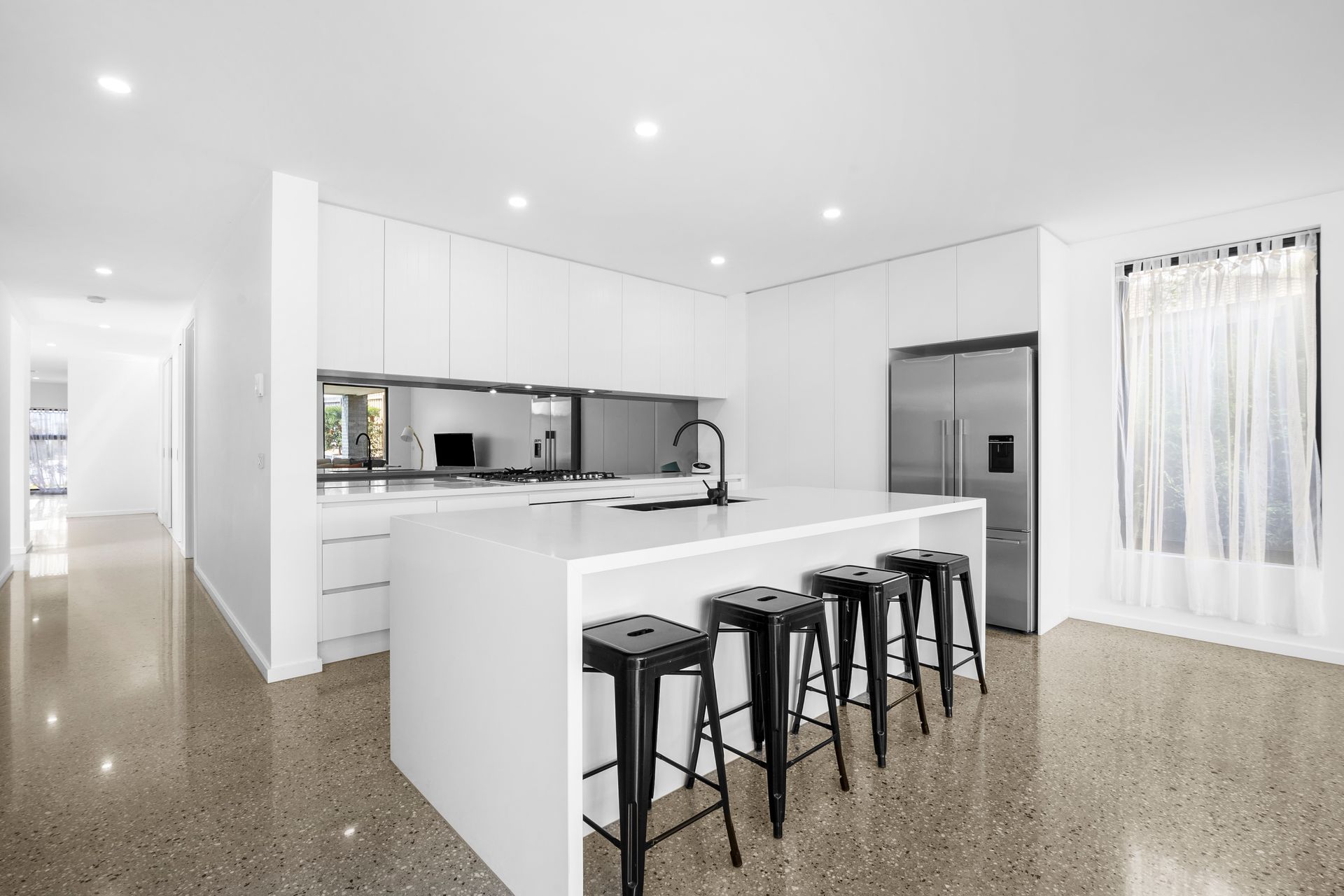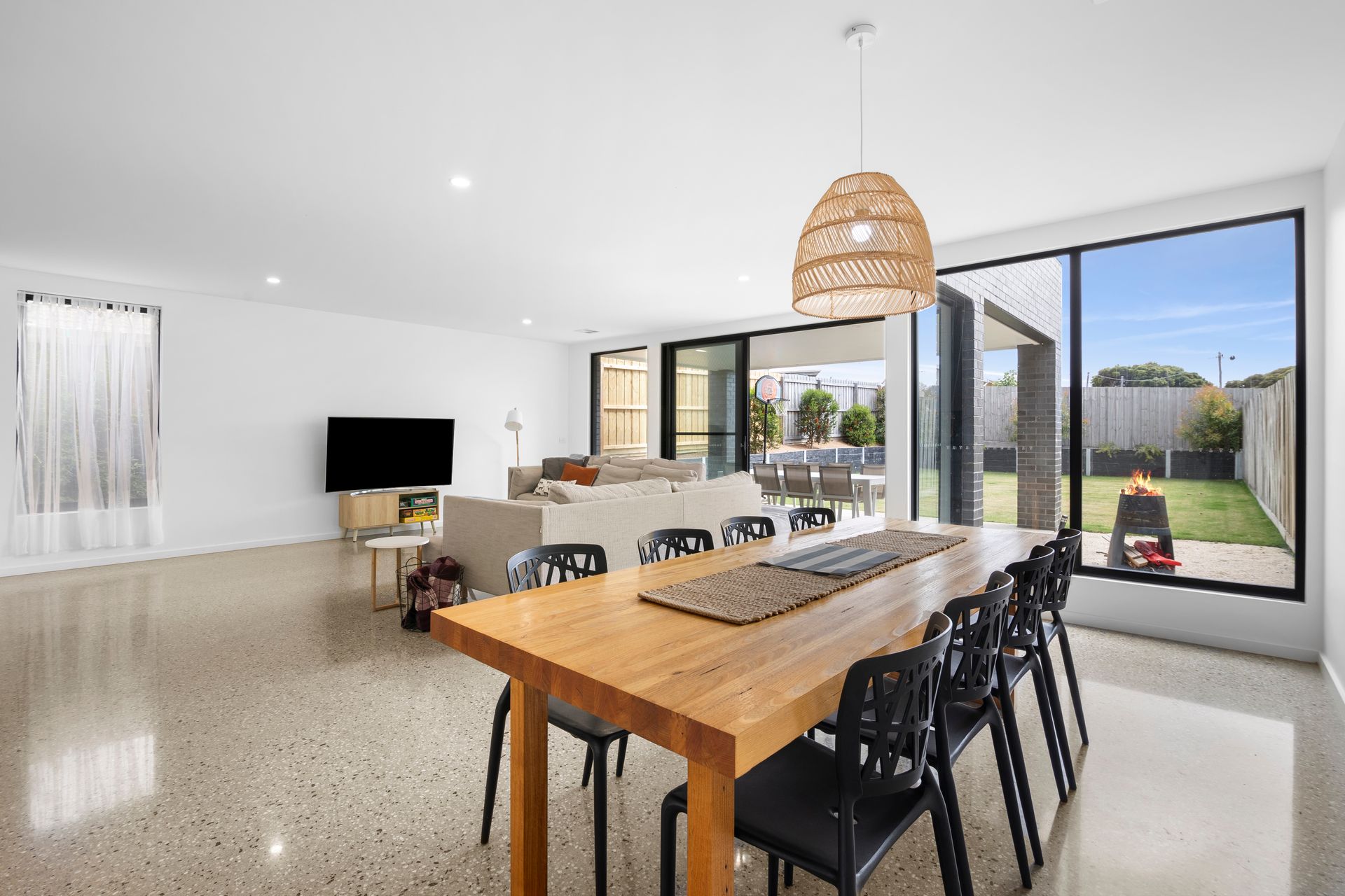 Step into a world of elegance with exquisite polished concrete floors that lead you to an expansive open plan kitchen, living, and dining area. This beautifully designed space flows seamlessly to the outdoor dining area where you’ll find a BBQ, basketball hoop, and a cozy fire pit area perfect for evenings under the stars. Unwind in the large master suite featuring a luxurious King bed, a walk-in robe, and a designer ensuite bathroom.