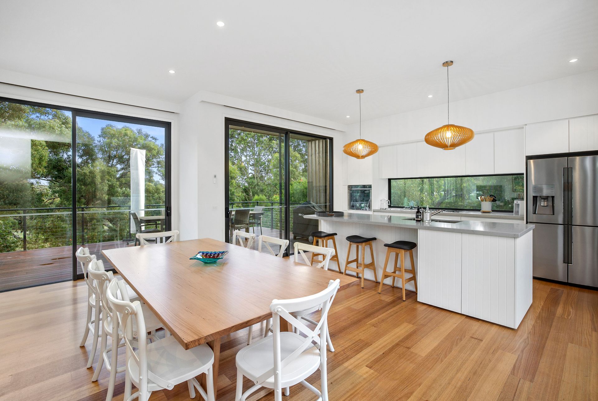 This beautifully designed four-bedroom home offers a relaxed and stylish escape for families and groups seeking space, comfort, and a touch of luxury. With expansive open-plan living, soaring ceilings, and floor-to-ceiling windows, the home is filled with natural light and coastal charm.