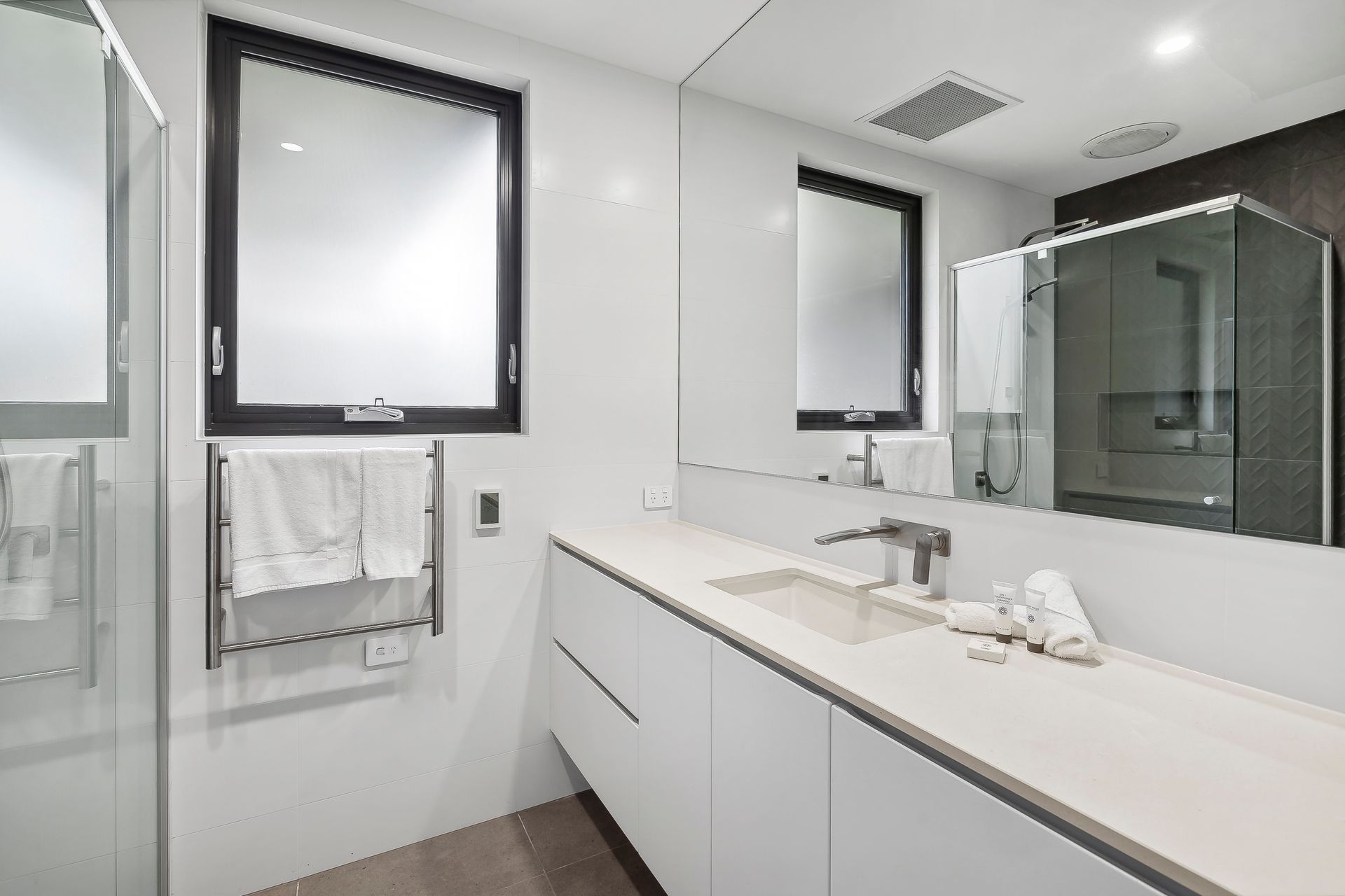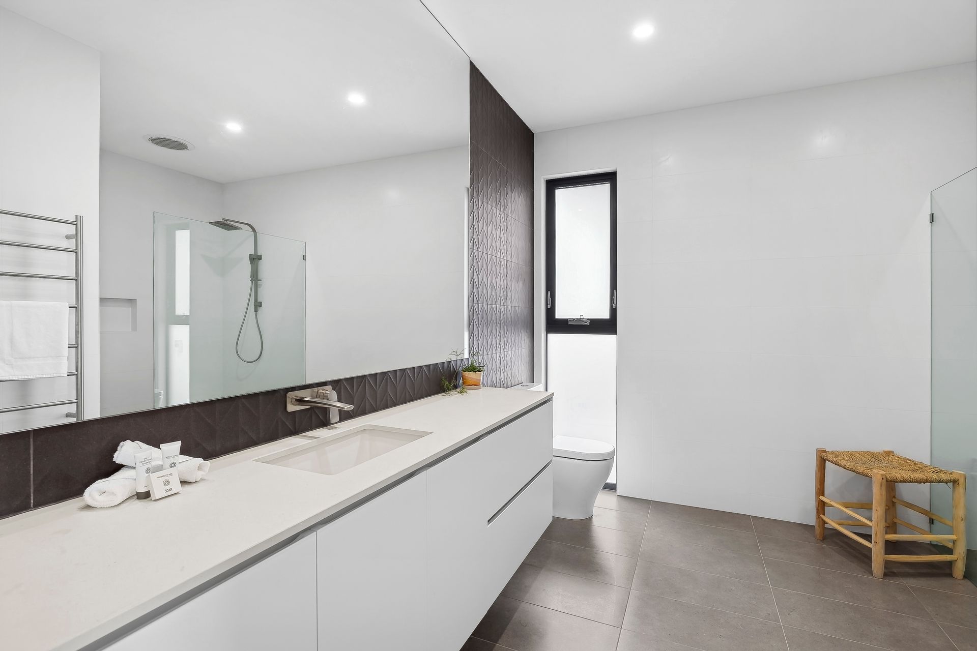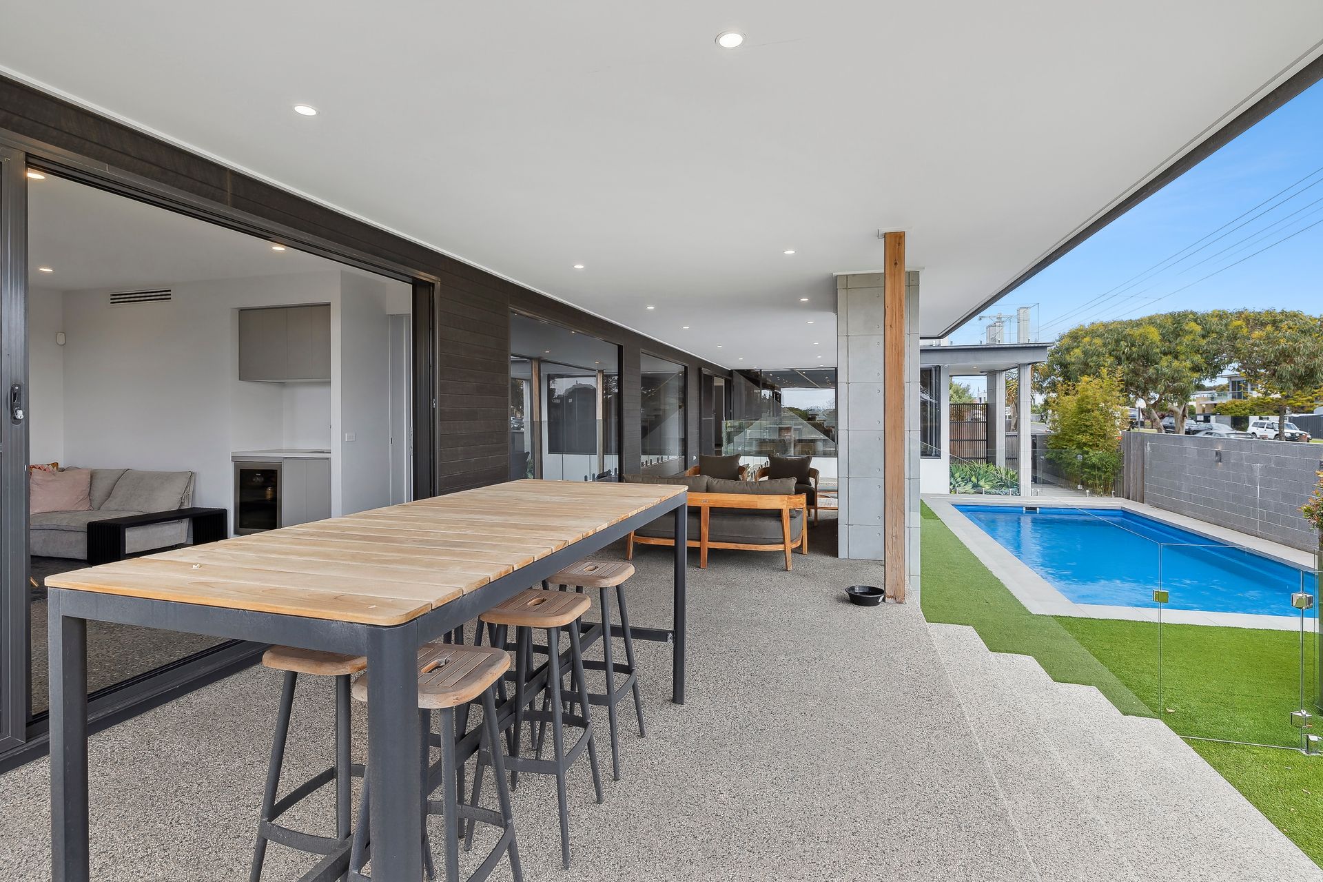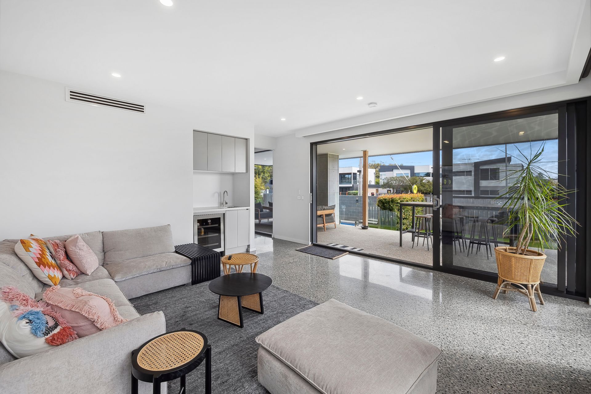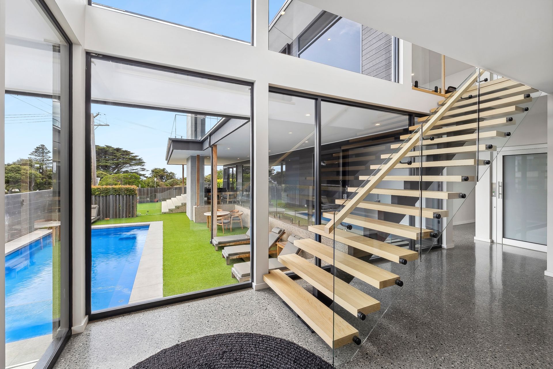 Throughout the house, you’ll find premium finishes, including concrete floors downstairs and timber floors upstairs, creating a stylish and welcoming atmosphere.