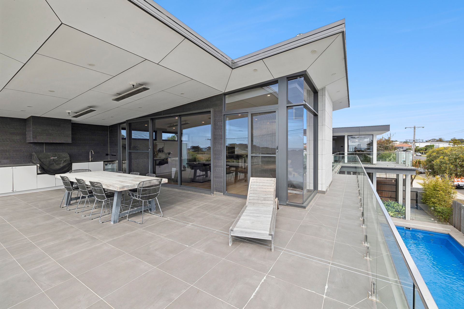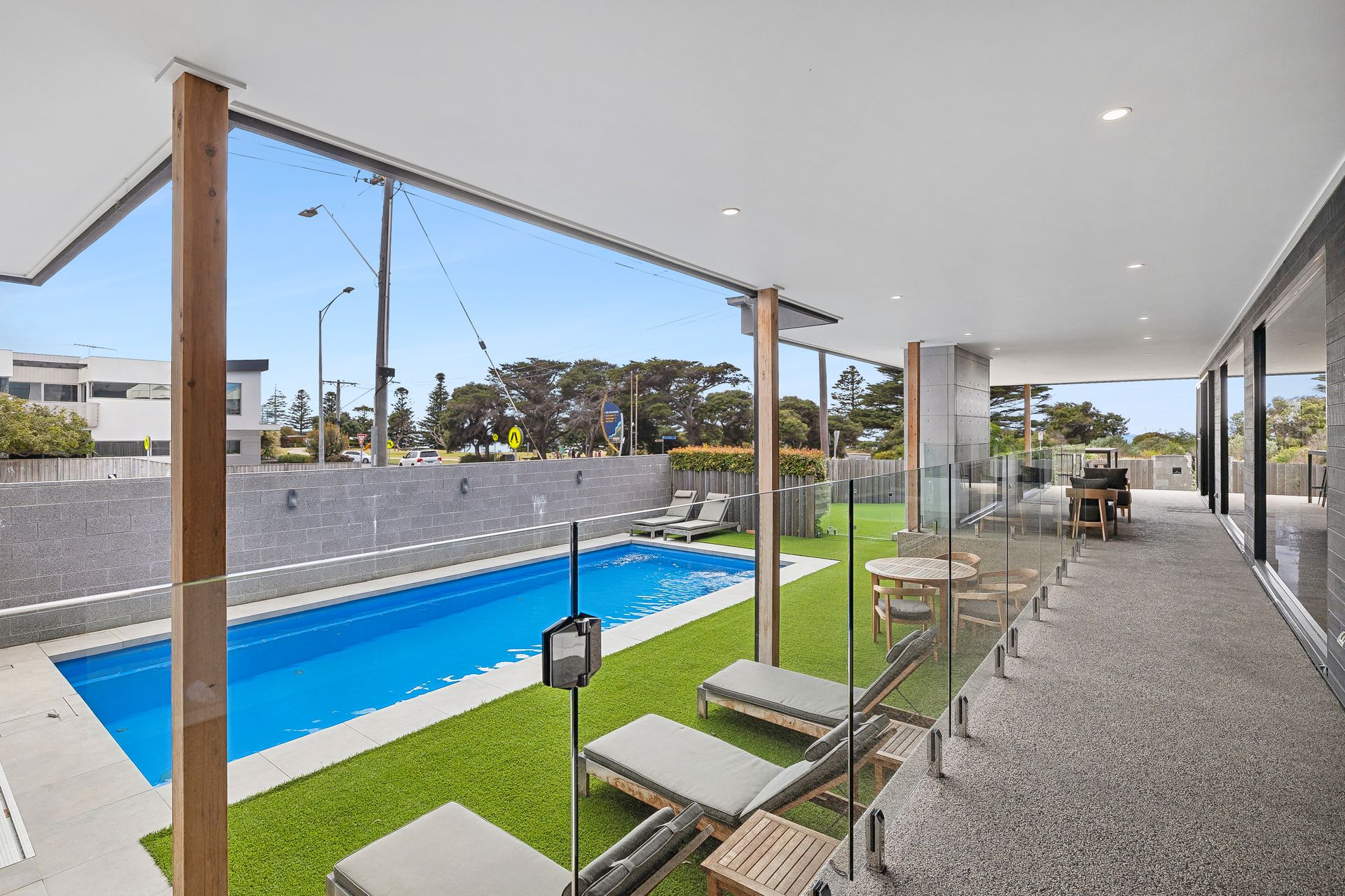 As you enter you’ll be captivated by the stunning blue pool, the centrepiece of the home.