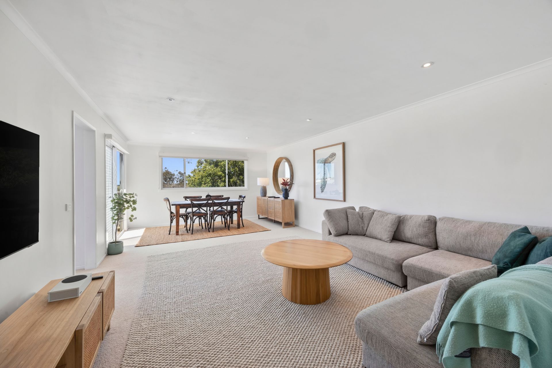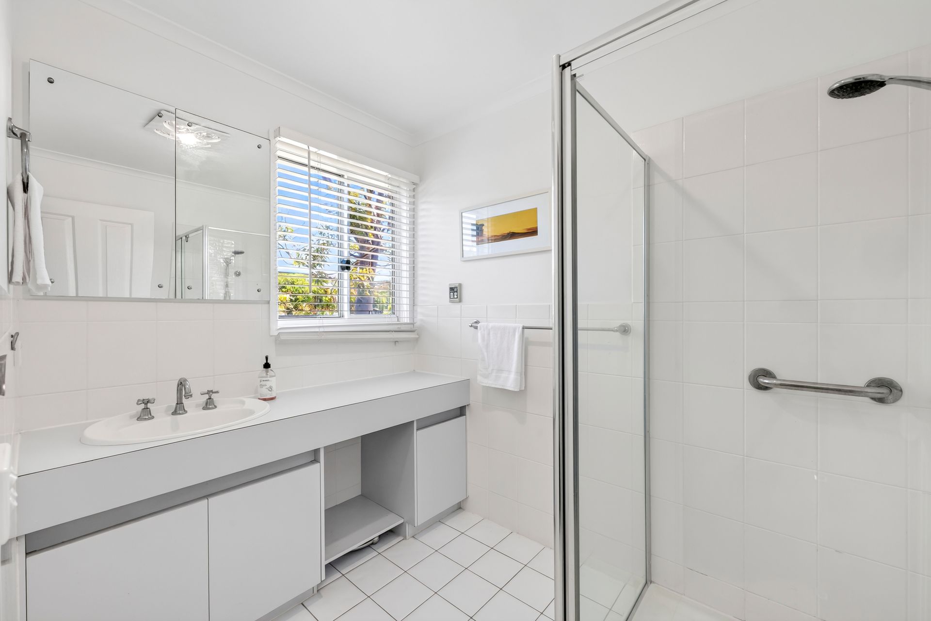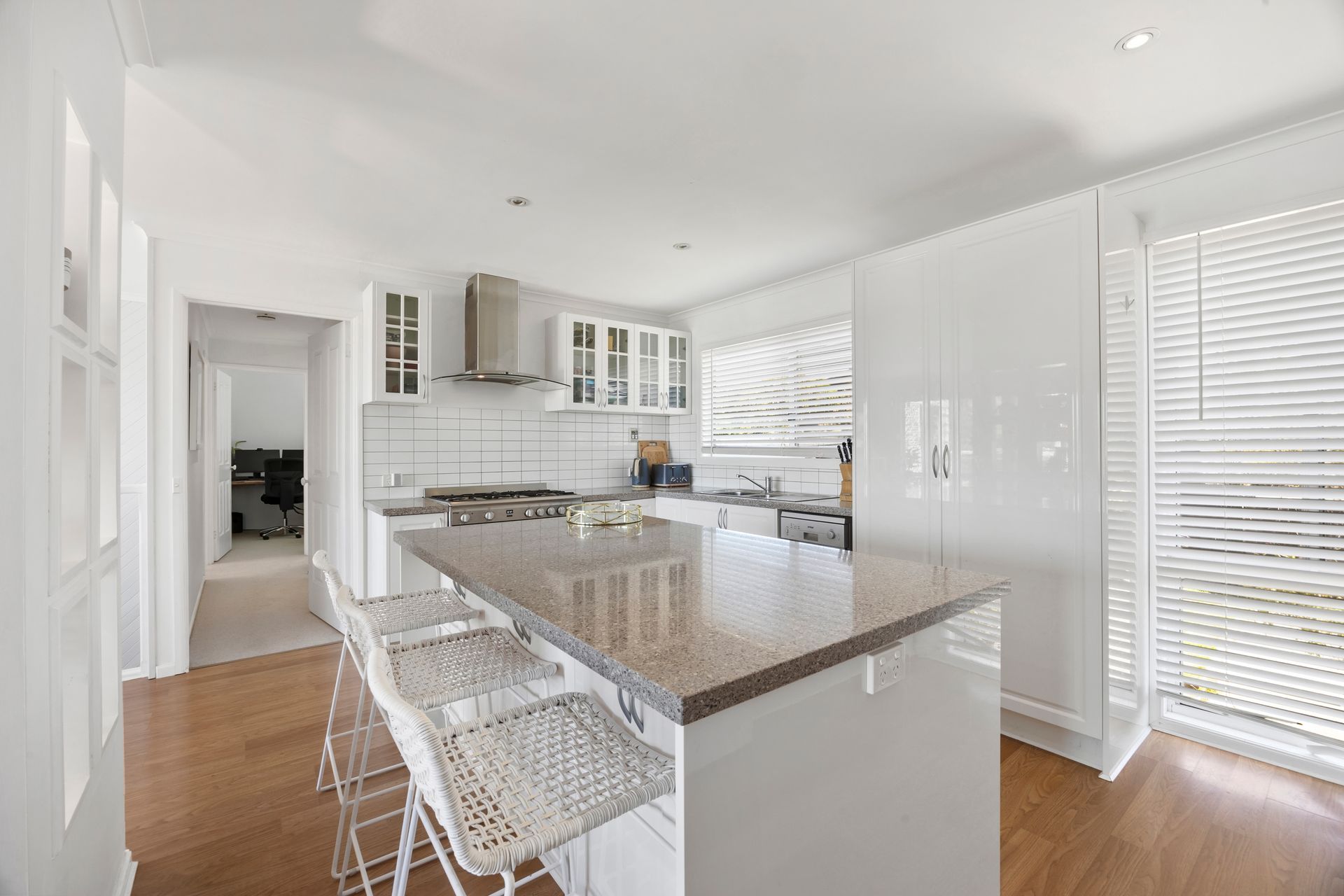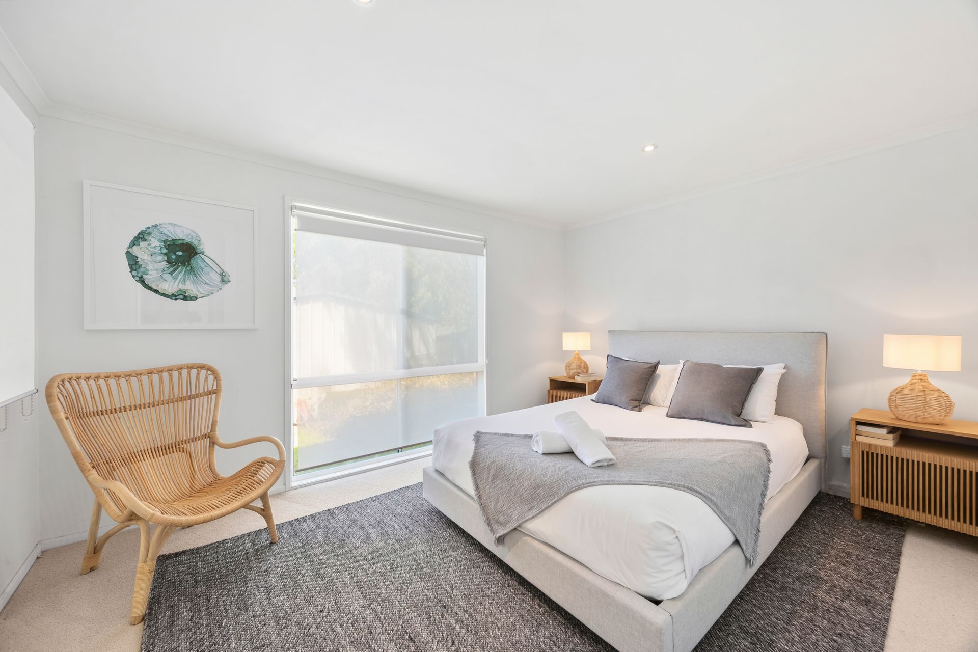 The upper level boasts two spacious living areas, both equipped with Smart TVs, and a fantastic entertainer’s kitchen complete with an espresso machine. This area also features air conditioning for year-round comfort. Flowing from the living spaces is a large deck offering breathtaking views over the RACV golf course and out to the ocean. The deck is furnished with a dining table, outdoor lounge seating, and a new BBQ—perfect for alfresco dining and relaxing in the coastal breeze.