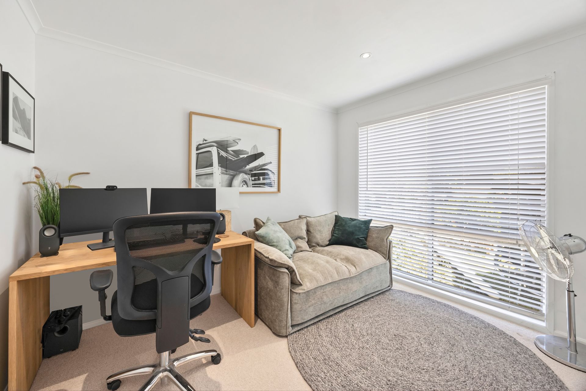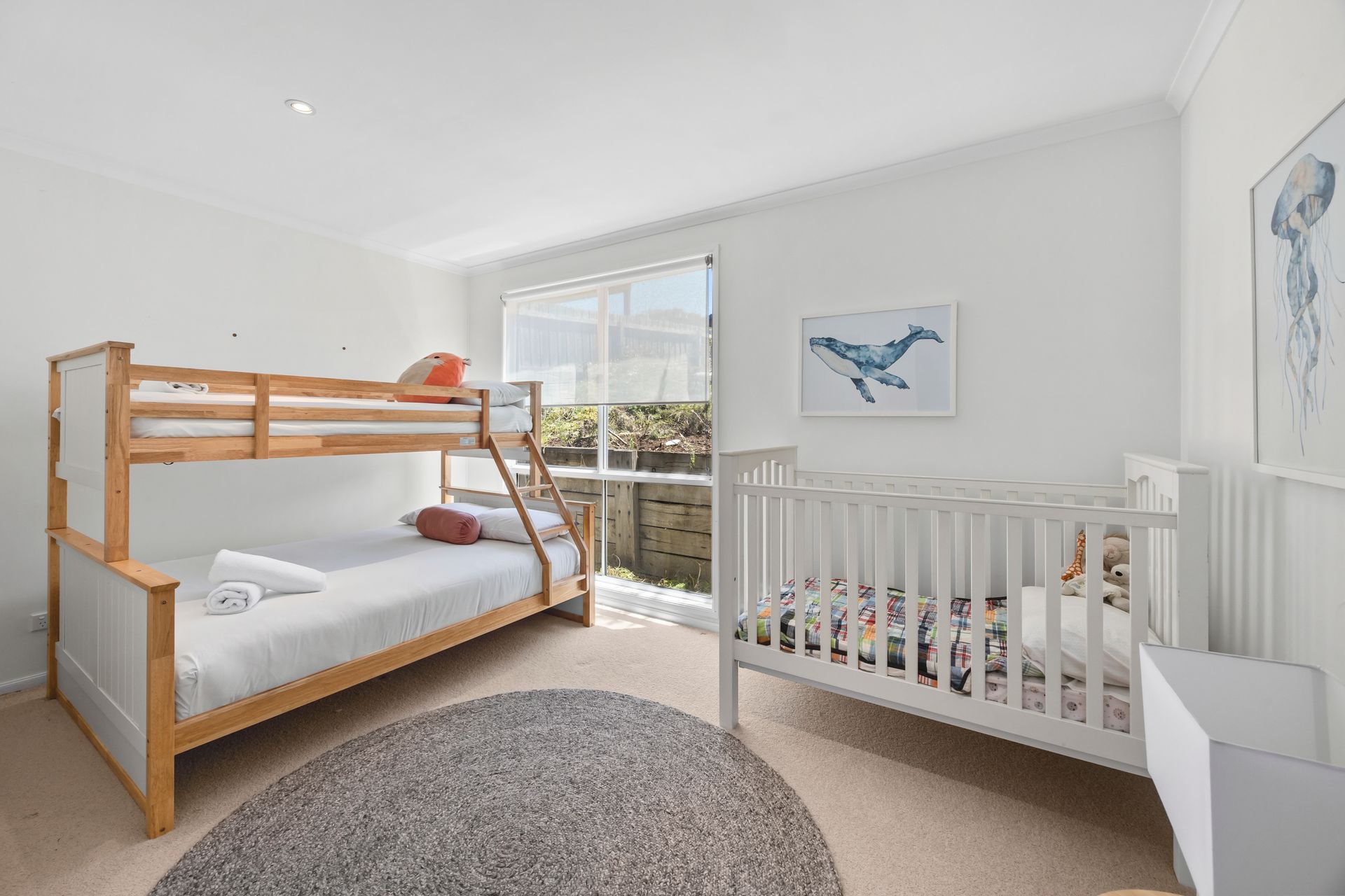 Downstairs features three bedrooms: Master with a Queen bed, Second bedroom with queen bed, and a third with a tri-bunk and cot, making it ideal for families with young children. The family bathroom and laundry are also located on the ground floor for convenience. Upstairs, the fourth bedroom doubles as a home office and includes a brand-new double sofa bed, allowing the property to accommodate up to nine guests comfortably.