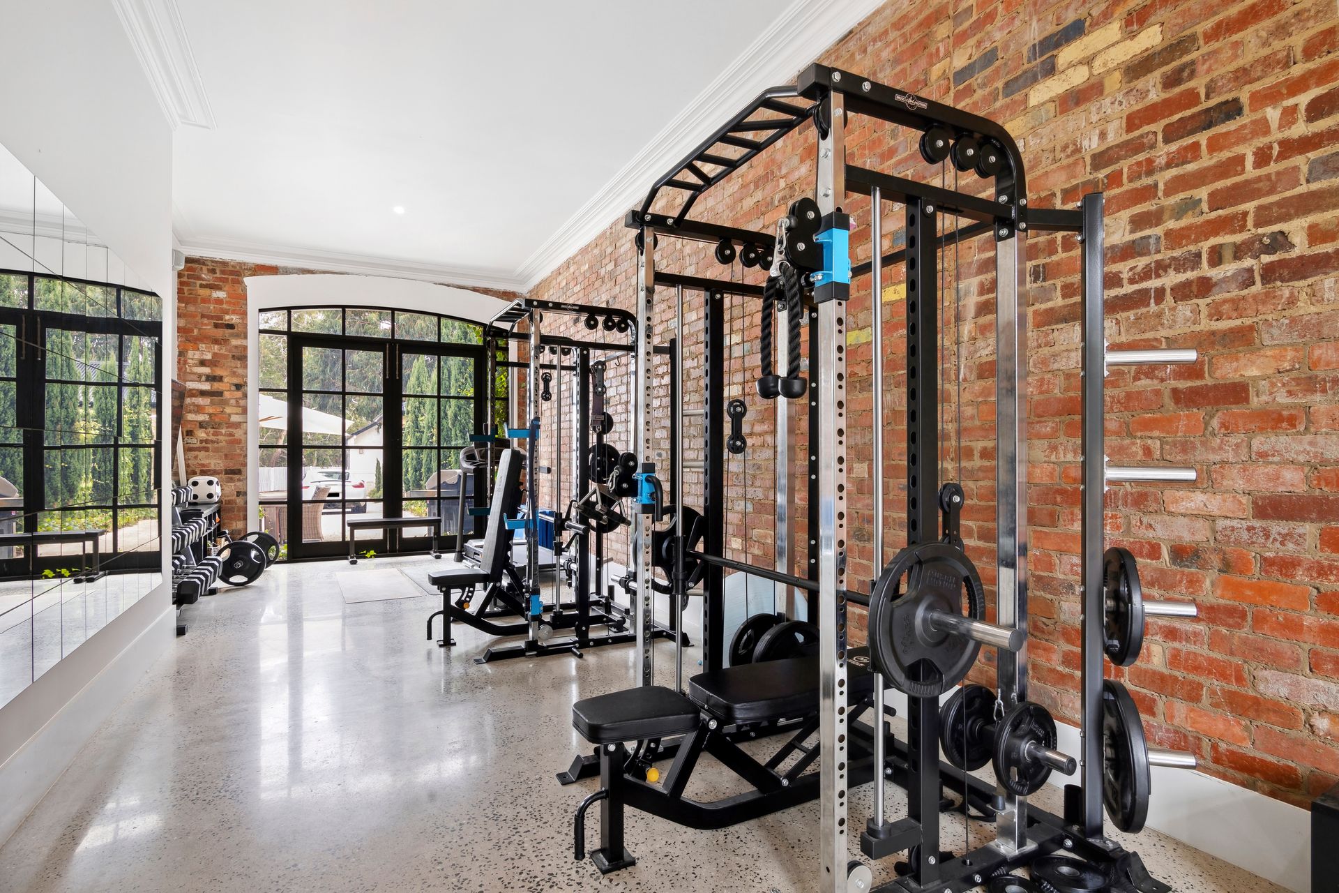 Back downstairs you can stay active during your stay in the full gym, which is equipped with two Smith machines, a treadmill, dumbbells, and more. The home also boasts an impressive 330,000 litres in huge water tanks, along with two instantaneous hot water tanks. There is ducted heating throughout and for extra warmth on a cool winters night, enjoy the cozy ambiance of wood fire heating both upstairs and downstairs.