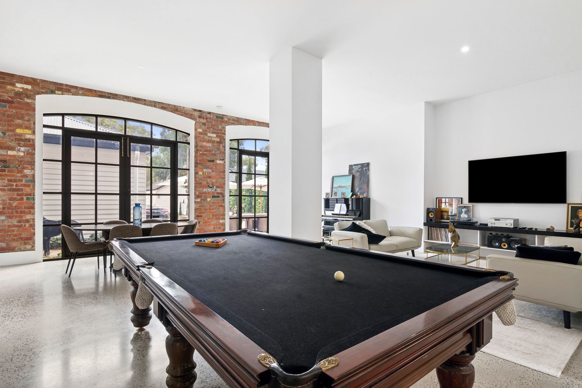 Step into the main kitchen and it’s a chef’s dream, featuring integrated appliances including top-of-the-line Wolf double induction oven and Perrin and Row tapware. Whether you're preparing a meal for a large group or hosting a dinner party, this kitchen is equipped to handle it all. For those who love entertaining, you’ll love the industrial-style kitchen located in the next room alongside a large entertainment space, complete with a full size billiard table and piano, creating the perfect environment for socializing and enjoying good company.
