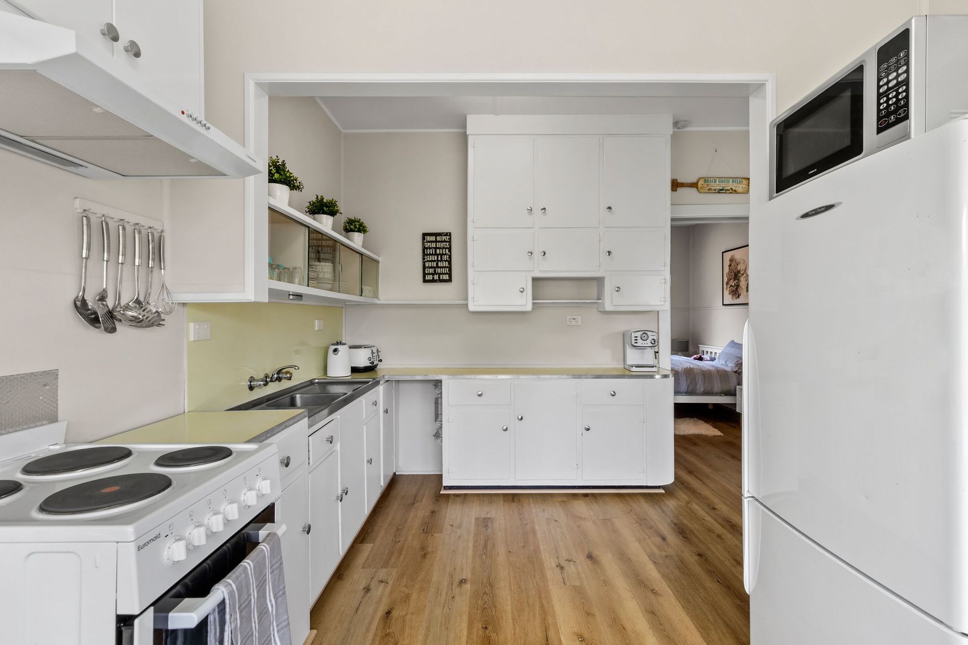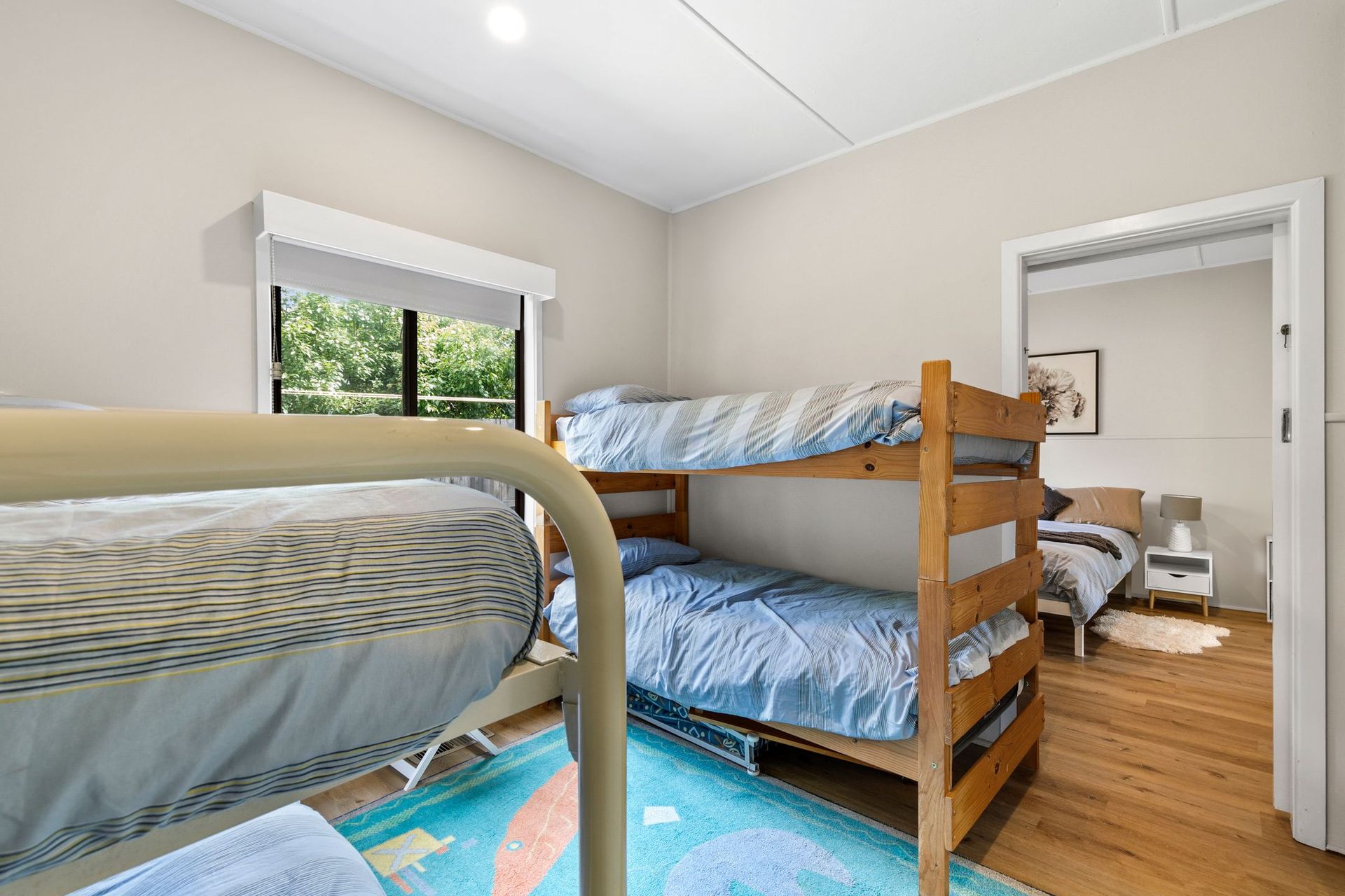 The home sleeps up to eight guests with a queen bed in the master bedroom, four single bunks in the adjoining room that kids will love, and another queen bed in the rear bedroom. A renovated bathroom and two separate toilets make family stays easy and convenient.